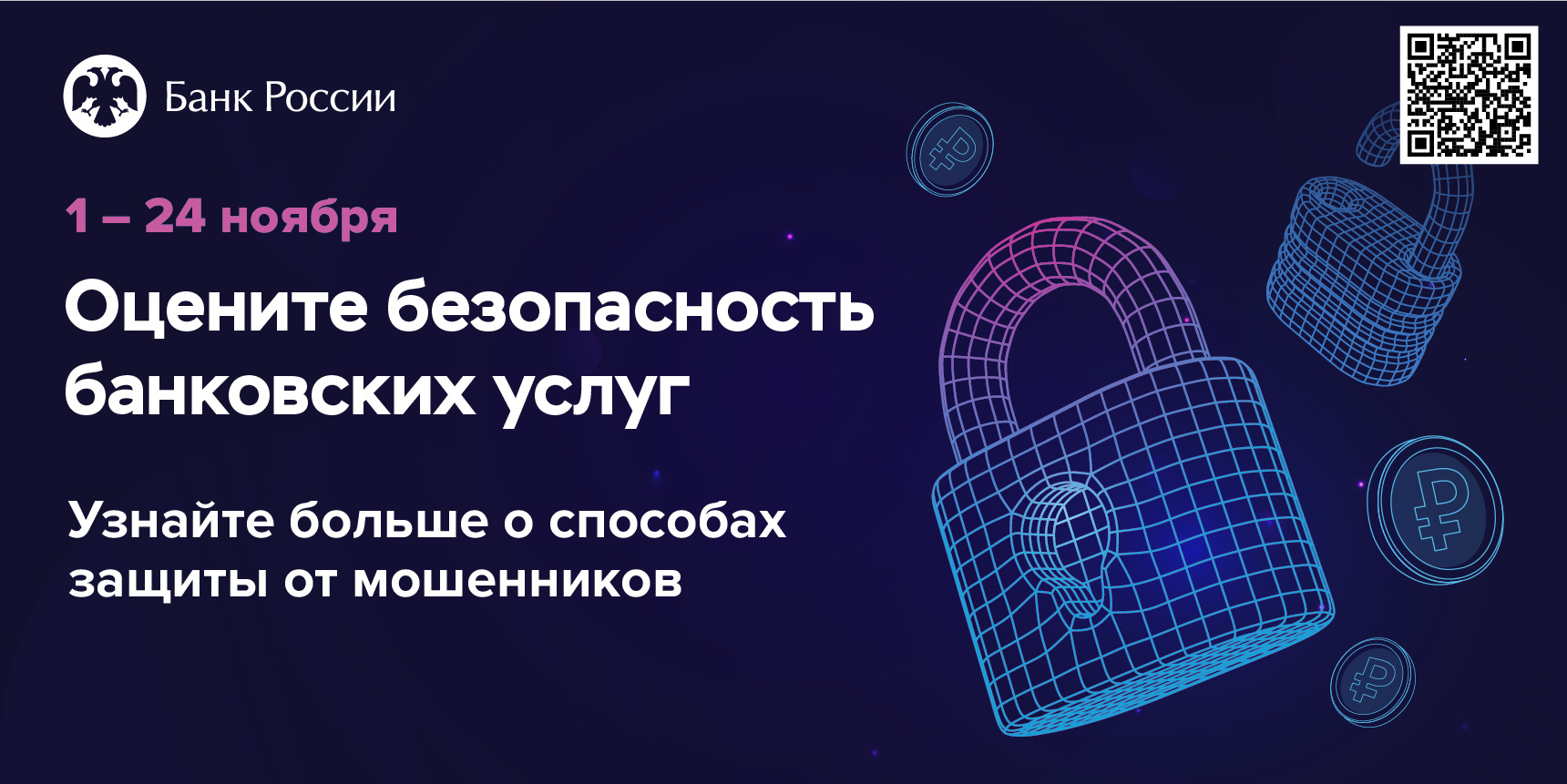 Банк России ежегодно проводит «Опрос об удовлетворенности безопасностью банковских услуг», исследование продлится до 24 ноября включительно. Результаты опроса будут опубликованы на сайте регулятора, а также учтены в работе с поднадзорными организациями.